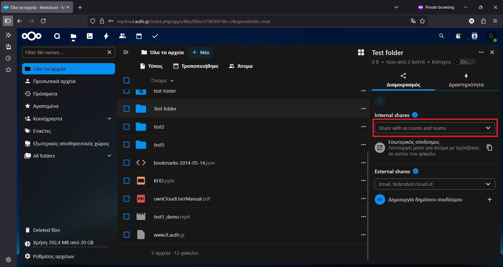 Διαμοιρασμός φακέλου/αρχείου με άτομα εκτός ΑΠΘ #