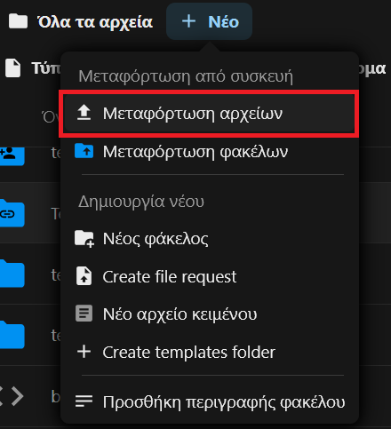 Μεταφόρτωση αρχείων σε φάκελο #