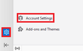 Από το μενού του Mozilla Thunderbird, κάτω αριστερά επιλέγουμε στο γραναζάκι > Ρυθμίσεις Λογαριασμού / Account Settings.