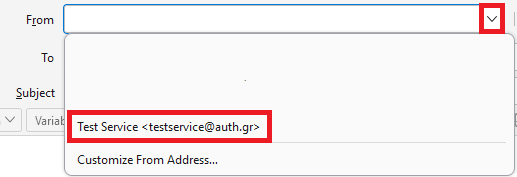Κατά τη σύνταξη νέου e-mail θα έχουμε τη δυνατότητα να επιλέγουμε την επιθυμητή ταυτότητα αποστολέα από μενού drop-down.