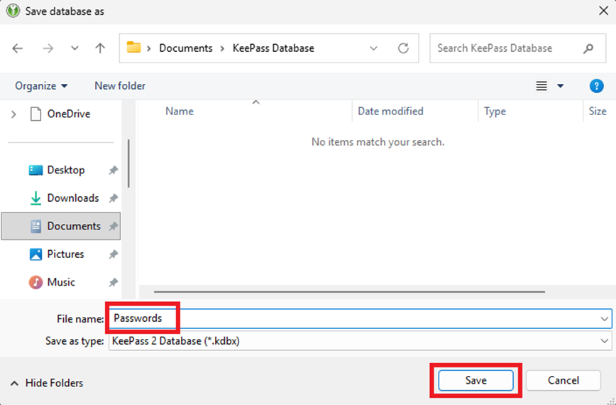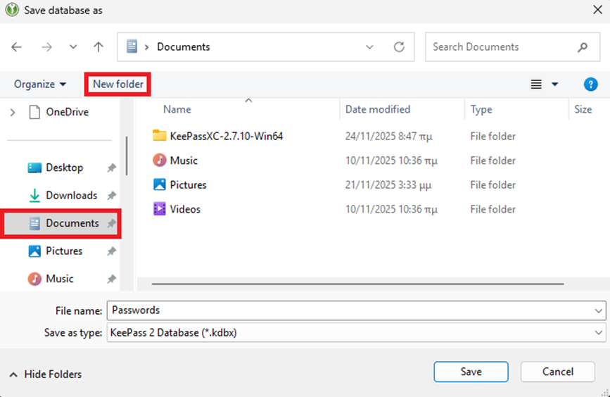 9. Δίνουμε ένα όνομα στο αρχείο (π.χ. Passwords) και κάνουμε κλικ στο Save.
