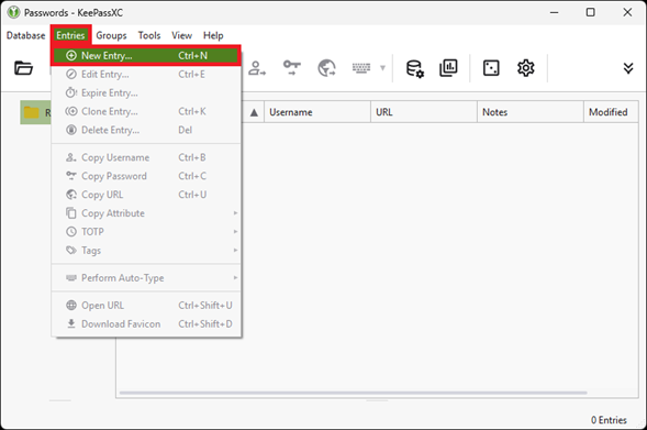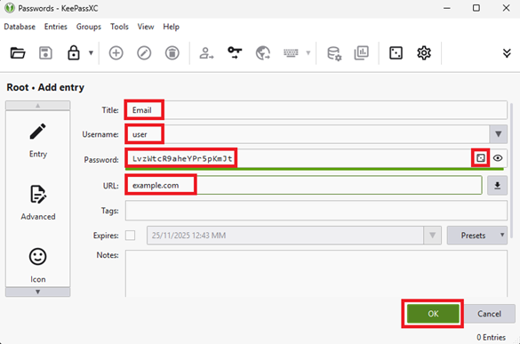 Προσθήκη νέας εγγραφής στη βάση του KeePassXC #