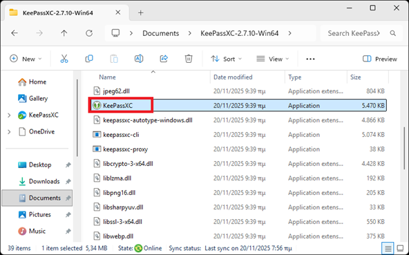 5. Ανοίγουμε τον φάκελο που δημιουργήθηκε και δημιουργούμε συντόμευση του αρχείου KeePassXC στην επιφάνεια εργασίας.