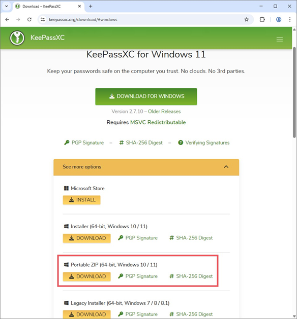 Για τη λήψη του KeePassXC για υπολογιστή με λειτουργικό σύστημα Windows 10/11