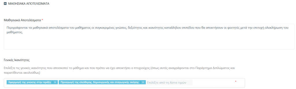 - την προβολή του Περιγράμματος Μαθήματος στο περιβάλλον διδάσκοντα, καθώς και στο περιβάλλον του οδηγού σπουδών στο https://courses.auth.gr
